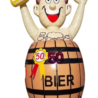 Burp..! Deze opblaasbare Abraham Bier Baby is voor de “jonge” Abraham die zich af en toe nog steeds als een kind gedraagt en jarig is. In zijn ene hand houdt hij een flesje bier met speen vast. In zijn andere hand een lekker stuk pizza. De pop is te verlichten van binnenuit, gegarandeerd dus dat deze grote jarige baby goed in de spotlights zal staan.