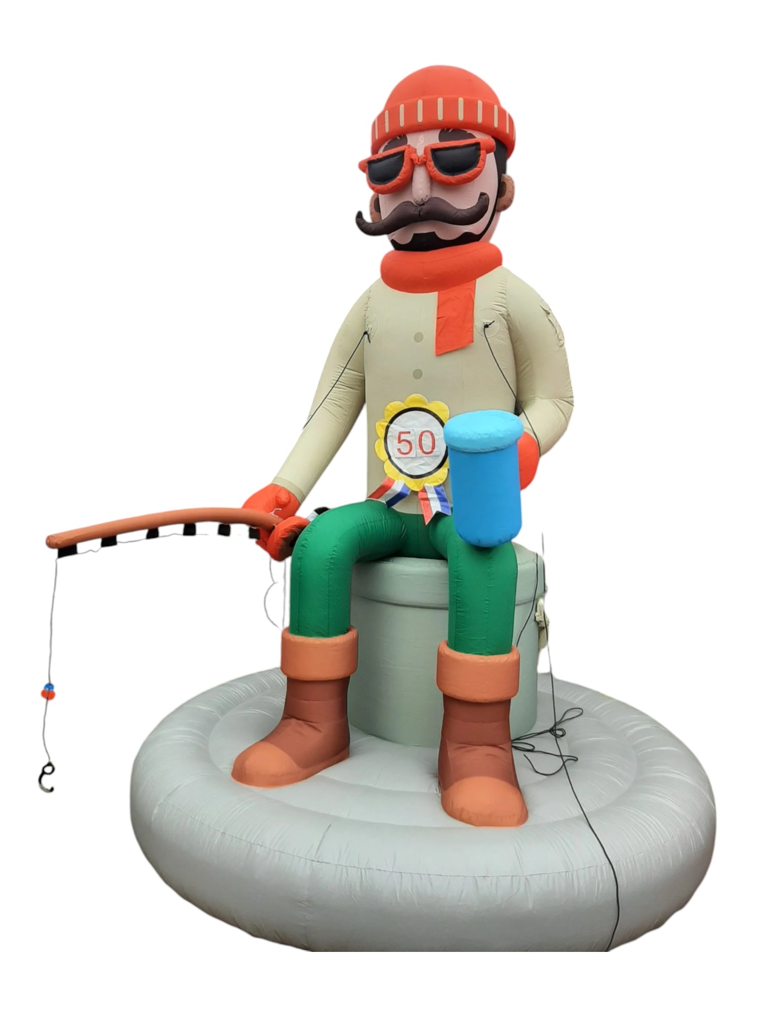 Deze Abraham visser pop is perfect voor de (sport) visser! Met maar liefst een hoogte van 3,8 meter vangt deze pop de aandacht van heel de straat! Weer een jaartje ouder, maar aan zijn charmes ontbreekt het niet. Hij kan met gemak iedereen aan de haak slaan. Met een vishengel, een bak koffie in de hand en zonnebril op zit deze opblaasbare Abraham lekker te genieten aan de waterkant. Hobbymatig of een echte sportvisser? Deze pop is super leuk én bijpassend. Zo kun je iemand op een leuke manier in het zonnetje zetten of in de maling nemen! 30, 40 of 50 jaar, deze visser pop kan van verschillende leeftijden worden voorzien! Dit is echt een mooie pop om een feest of partij op te laten vallen voor de hele buurt!