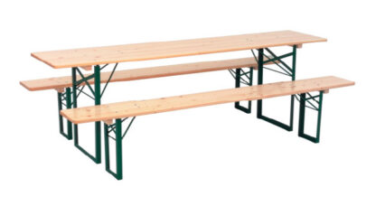 Op een feest of evenement moet men natuurlijk ook kunnen zitten. Dus naast de ruime keuze voor vermaak, suikerspin en popcorn kunt u ook bij ons een Biertafel en banken set huren maar ook statafels. De biertafel en banken set is 2,20 meter lang en de tafel is 50 cm breed. Het is een drie-delig met een tafel en 2 banken, de set is geschikt voor 8 volwassenen of 10 kinderen. Met deze tafel en banken set kunt u makkelijk in en uitklappen. Zo heeft u snel zit ruimte. Wilt u een Schützenfest of Duits of Tiroler feest geven dan mogen deze tafels en banken niet missen.