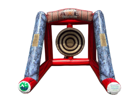 Het spel is gemakkelijk op te zetten binnen ongeveer 5 minuten. Daarna kan je genieten van een dag vol plezier! De inflatable wordt geleverd inclusief blower, bijlen om mee te gooien, verankering materiaal en een transportzak.