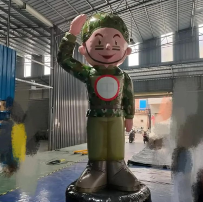 De Militair opblaaspop is ideale opblaaspop voor de jarige/gevierde die in het leger zit, terugkomt of in het leger zat. Hij is wel 4 meter hoog. Het is een echte blikvanger en daarmee trekt ‘ie de aandacht van de hele straat! Dus: ken jij een topper die in het leger heeft gezeten of ben je zelf een echte militair? Huur dan de militair opblaaspop.