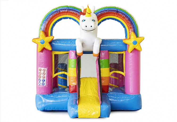 Bezorg kinderen de dag van hun leven met deze Mini Unicorn Springkussen. Dit compacte kussen past in vrijwel iedere achtertuin of oprit. Ideaal, want zo is dit springkussen al snel overal te plaatsen. De wanden en handig geplaatste netten zorgen voor extra veiligheid en ruimte voor toezicht. Op het springvlak zijn obstakels geplaatst en er is een coole glijbaan in het midden. Boven de glijbaan staat een prachtige eenhoorn, tussen 2 regenbogen in. Het springkussen is kleurrijk en staat voor gegarandeerd plezier en verwondering.