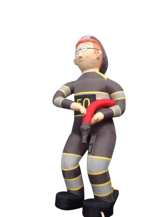 Deze Opblaas Brandweer Abraham pop kan elk brandje blussen. Laat het alarm maar afgaan! Iedereen mag het weten want komend jaar zal “…….” als Abraham door het leven gaan! Met zijn waterslang paraat kan deze Abraham elk vuurtje aan. In een prachtig brandweerpak is het een opvallende verschijning. Deze opblaasbare Abraham pop is 4,5 meter hoog. Naast 50 jaar is het ook mogelijk om de pop van een andere leeftijd te voorzien.