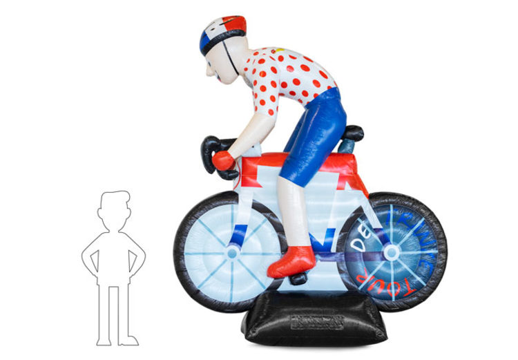 Deze uniek opblaasbare pop moet natuurlijk gezien worden. Zorg er dus voor dat u voldoende ruimte heeft. De opblaasbare wielrenner is 4 meter hoog en 2,5 meter breed.