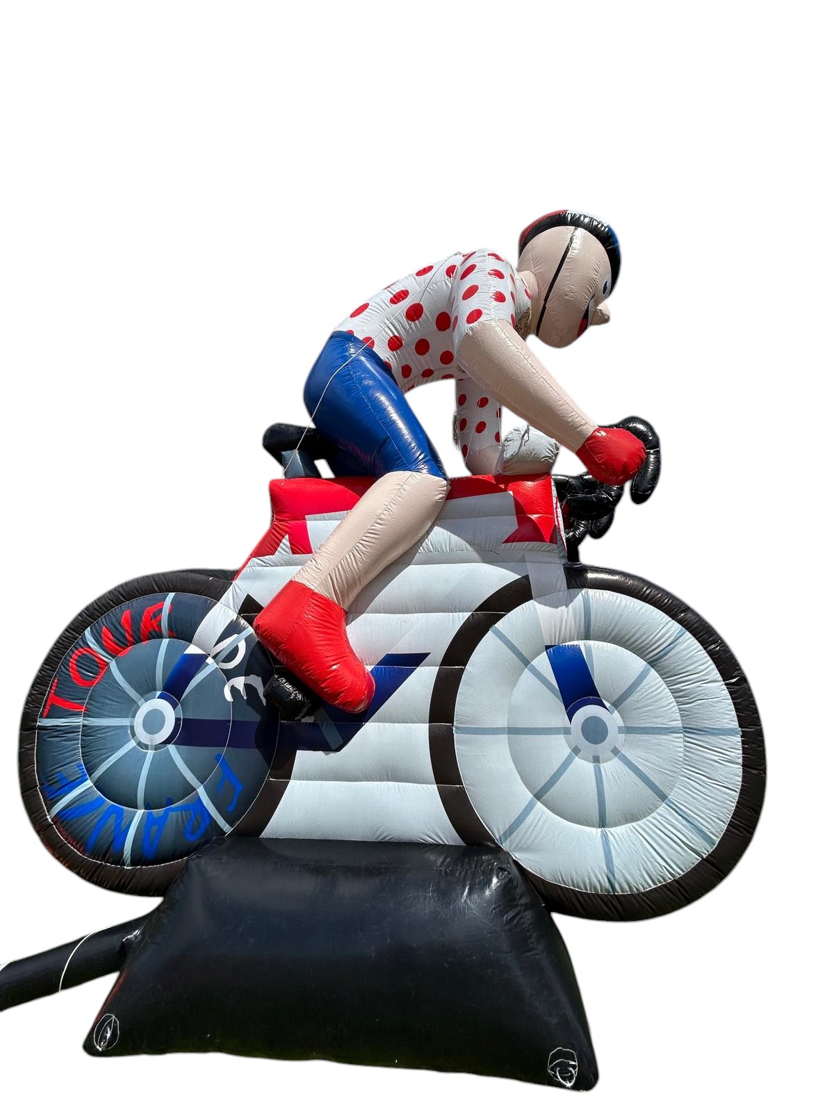 De unieke opblaasbare Wielrenner huurt u voor 3 dagen, voor maar € 75,00 inclusief BTW