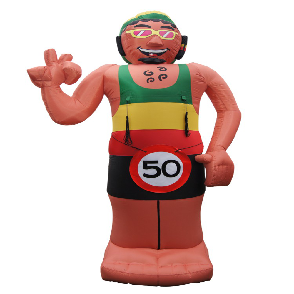 Deze relaxte opblaasbare “Relax Bob 50 jaar Latin” pop met zonnebril weet de sfeer goed neer te zetten! Genietend van muziek, een echte Rasta, Bob Marley is er niets bij. Deze Jamaicaanse jongen weet te shinen zelfs zonder de zon!  Aan wie doet dit jou denken? Zet deze jarige dan eens extra in het zonnetje! Met deze pop trek je in ieder geval de aandacht. De hoogte van deze opblaasbare pop is 3,6 meter en wordt met een blower continu voorzien van lucht. Ook is het mogelijk om deze pop van een andere leeftijd te voorzien. Geen jarige maar wel een feestje? Om in Caribische sferen te komen is deze pop uitermate geschikt!