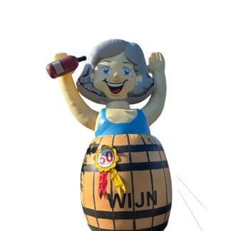 Opblaas Sarah zittend op Wijnvat 4,5 meter huren Tilburg